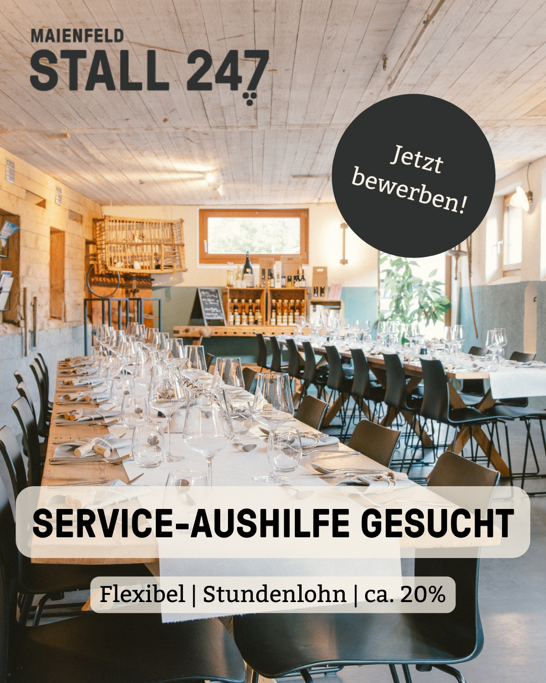 Du hast das Gastro-Gen und willst in einem coolen Team den Stall 247 mitgestalten und den Gästen ein besonderes Erlebnis vermitteln.